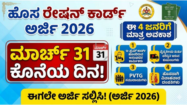 Ration Card Application 2026: ಮಾರ್ಚ್ 31 ಕೊನೆಯ ದಿನ! ಈ 4 ಜನರಿಗೆ ಮಾತ್ರ ಹೊಸ ರೇಷನ್ ಕಾರ್ಡ್ ಅರ್ಜಿ ಅವಕಾಶ ಕರ್ನಾಟಕ ರಾಜ್ಯದಲ್ಲಿ ಬಡ …