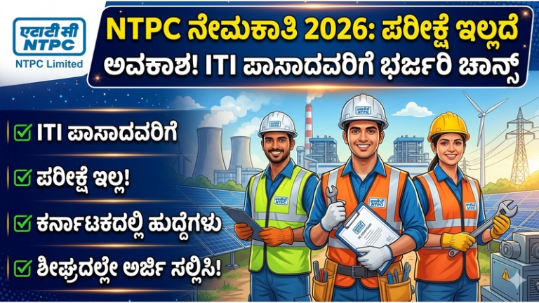 NTPC Recruitment 2026: ಪರೀಕ್ಷೆ ಇಲ್ಲದೆ ಅವಕಾಶ! ITI ಪಾಸಾದವರಿಗೆ ಭರ್ಜರಿ ಚಾನ್ಸ ಭಾರತದ ಪ್ರಮುಖ ಸರ್ಕಾರಿ ಸಂಸ್ಥೆಯಾದ NTPC Limited ವತಿಯಿಂದ Apprentice Recruitment 2026 …