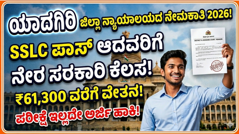 Yadagiri District Court Recruitment 2026: SSLC ಪಾಸ್ ಆದವರಿಗೆ ಬಂಪರ್ ಅವಕಾಶ! ಇತ್ತೀಚಿನ ದಿನಗಳಲ್ಲಿ ಸರ್ಕಾರಿ ಉದ್ಯೋಗ ಪಡೆಯುವುದು ತುಂಬಾ ಕಷ್ಟವಾಗಿದೆ ಎಂದು ಹಲವರು ಭಾವಿಸುತ್ತಿದ್ದಾರೆ. …